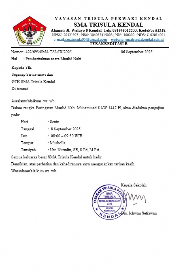 Pengumuman kegiatan Maulid Nabi 2025